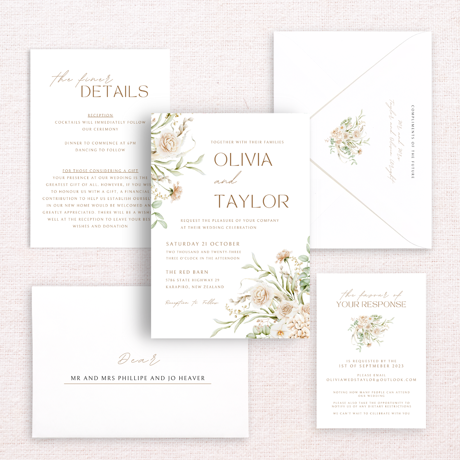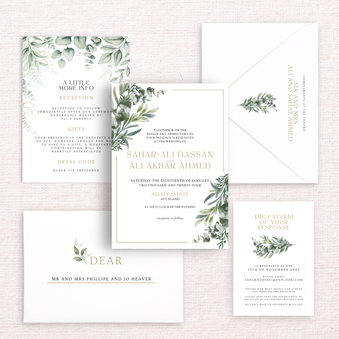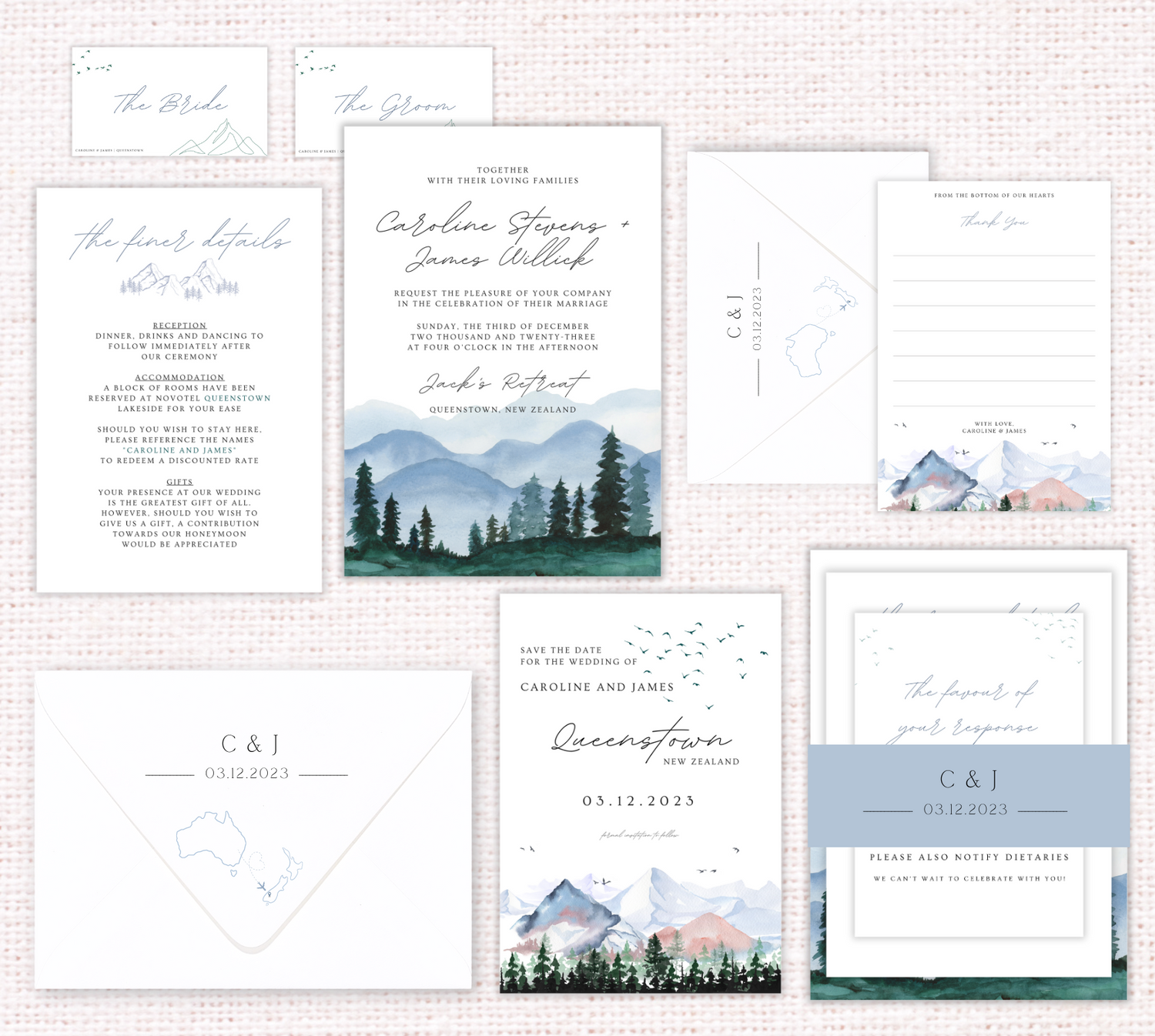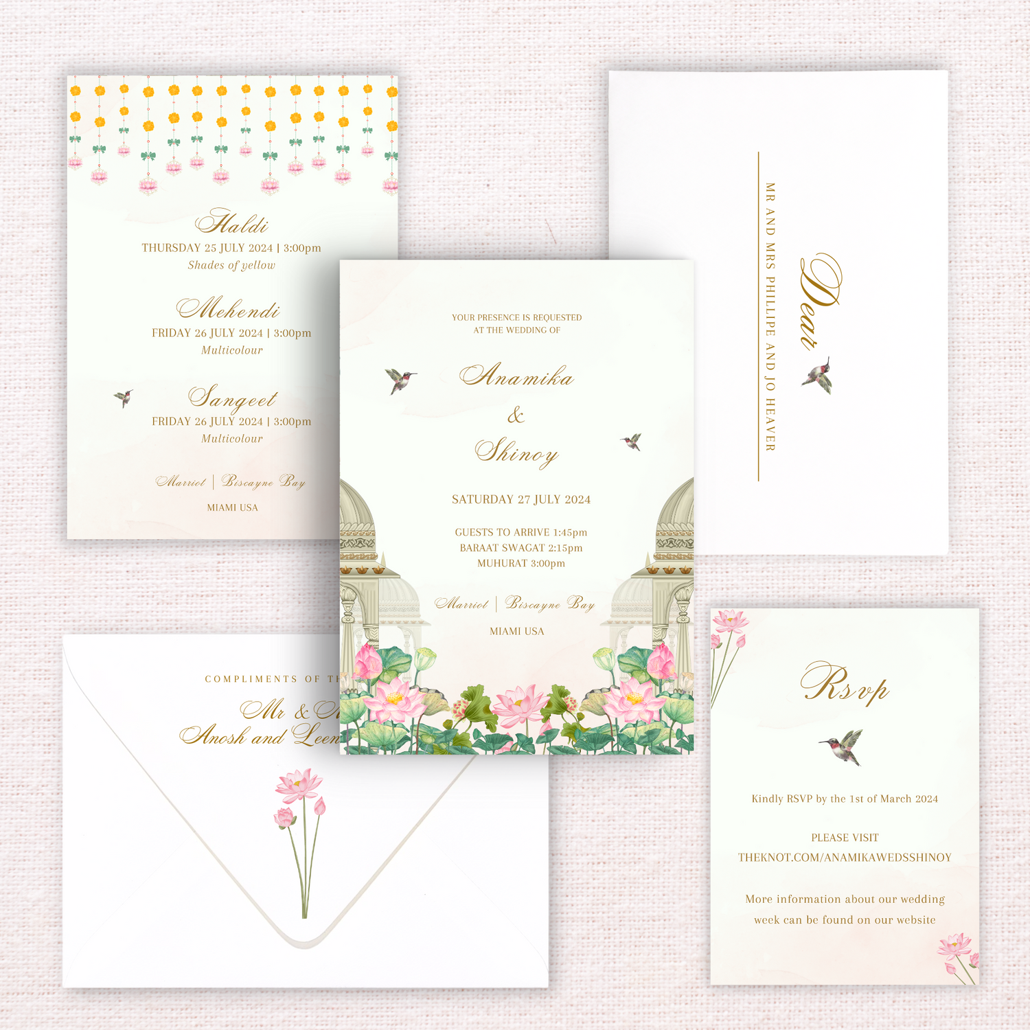 soft PASTELS AND DAINTY FLORALS, PERFECT FOR A MULTI-EVENT FUN FUSION WEDDING WEEK. MAKE THIS YOURS BY CUSTOMISING THE COLOUR PALLETTE OF EACH CARD.